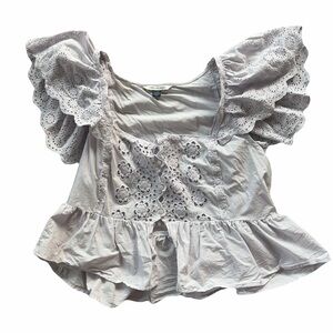 Blue Ruffle Sleeve Blouse