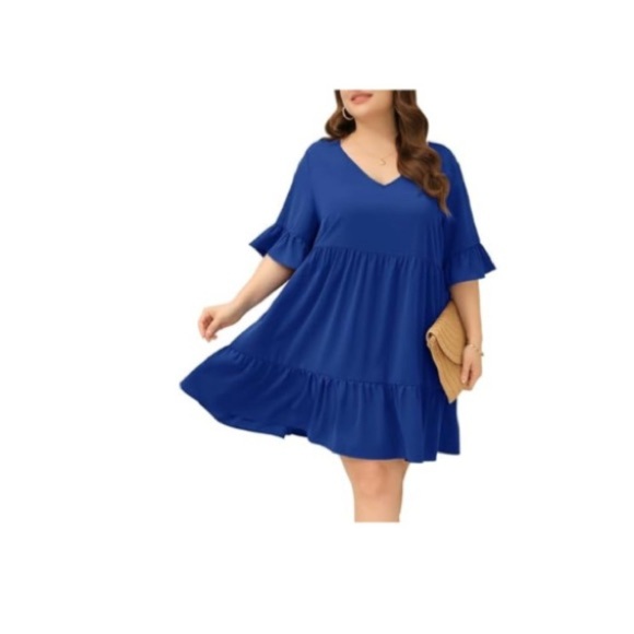 Chic blue dress with ruffle sleeves. Perfect for any occasion. New