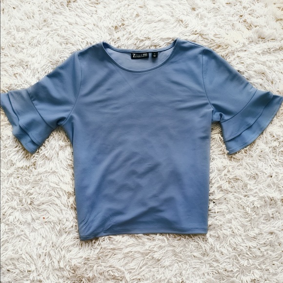 Blue Ruffle Sleeve Top
