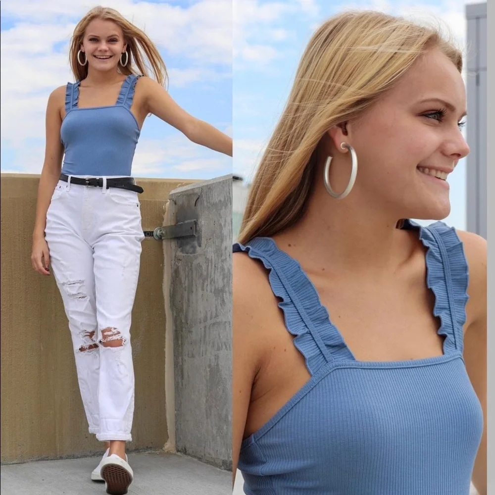 Blue Ruffle Tank