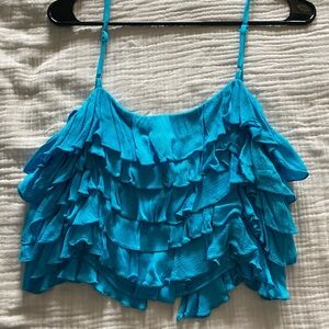Blue Ruffle Tank Top