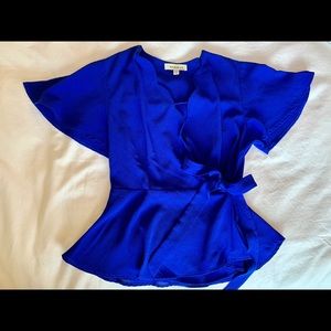 Accentuates curves with a tie waist and ruffles around the bodice area. Gorgeous royal blue color will be sure to capture anyone’s eye and is perfect for date night!