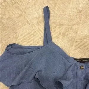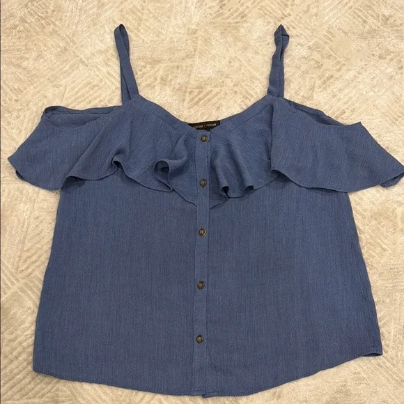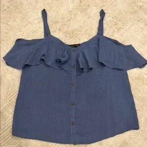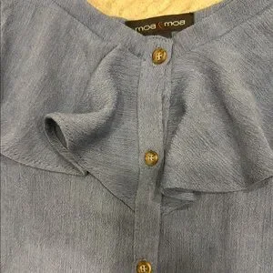 Elevate your style with this chic blue ruffled button-down top, with functional buttons. Light weight. Perfect for any occasion, this top offers a blend of comfort and elegance.