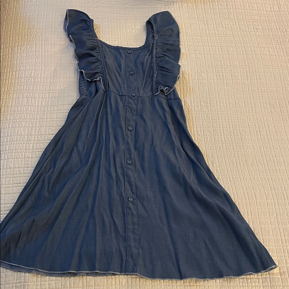 Charming blue kids dress with ruffled sleeves and button-down front. Perfect for any occasion.