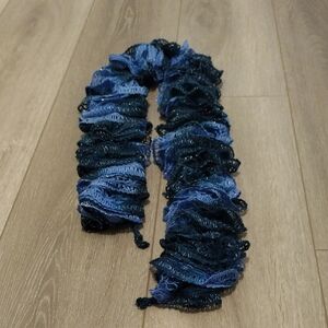 Beautiful ruffled knit scarf in shades of blue. Perfect for adding flair to any outfit!