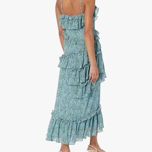 Elegant blue ruffled maxi dress perfect for any occasion. Features a stylish design with a comfortable fit.