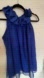 This elegant blue top features a stylish ruffled neckline, perfect for any occasion. Its vibrant color adds a touch of sophistication to your wardrobe. Romeo and Juliet couture, size large. All the way Zip down back. Ok condition, some minor spots on front but the flow kind of hides it, see pic.