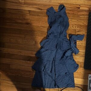 Chic blue ruffled skirt with a textured design. Perfect for casual or dressy occasions.