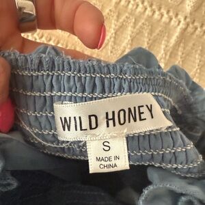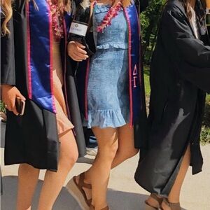 Chic blue sleeveless dress with ruffle details. Perfect for casual outings.