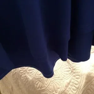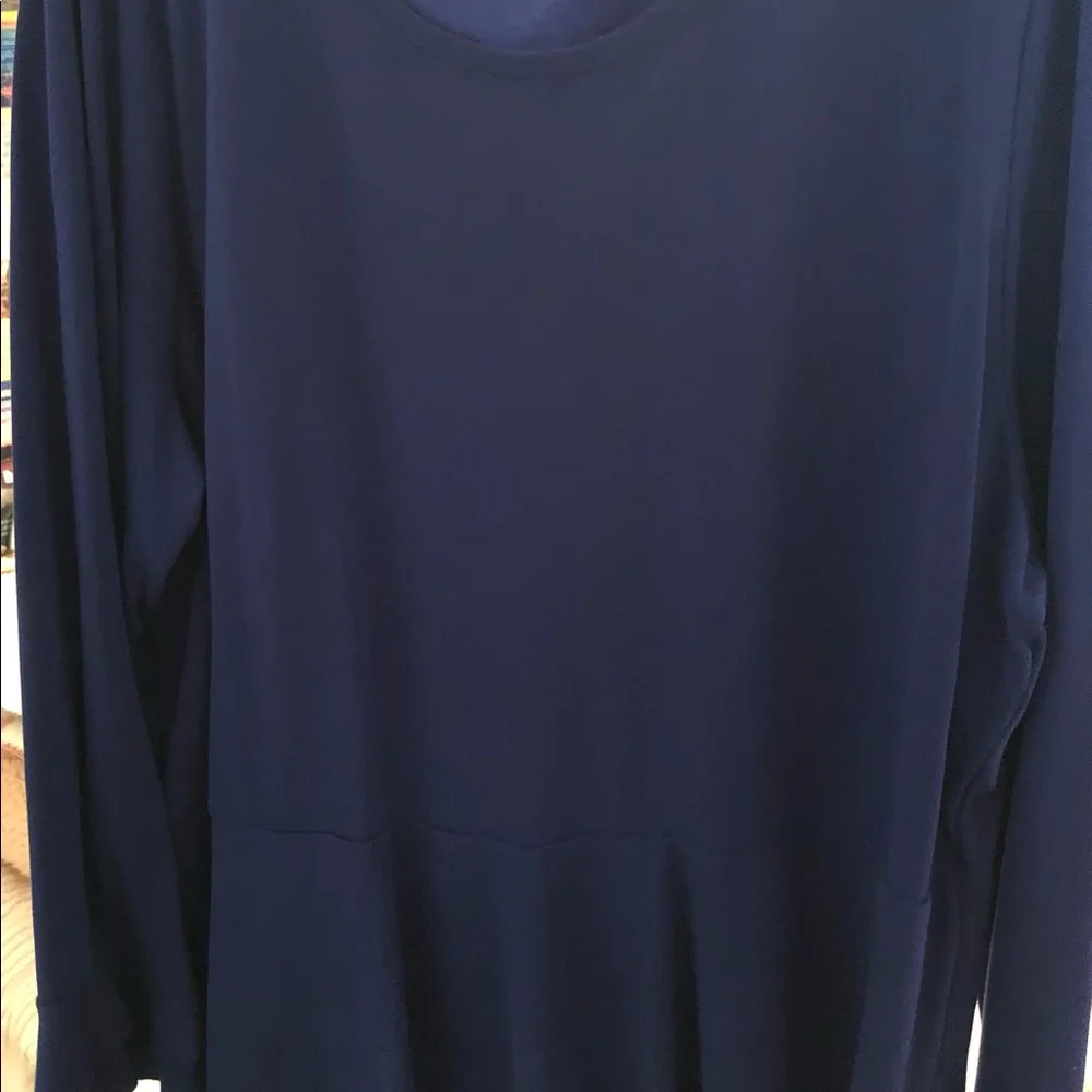 Blue ruffled top with double ruffle along hem and sleeves. Very cute!