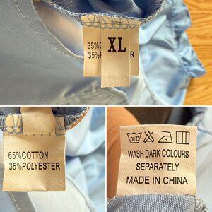 Blue Ruffled V Neck Blouse Womens XL Puff Sleeves Soft Girl Light Academia Offic