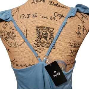 Blue Ruffled V Neck Style Wrap Dress Size Medium New With Tags