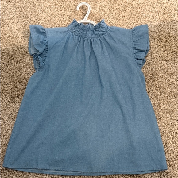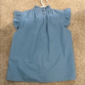 Chic and stylish blue women's top with elegant ruffled sleeves. Perfect for casual outings or a day at the office.