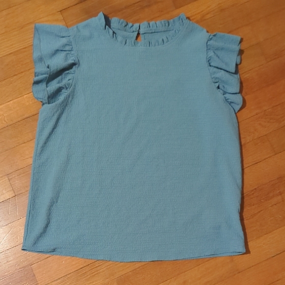 Charming blue kids top with playful ruffled sleeves. Perfect for any occasion.