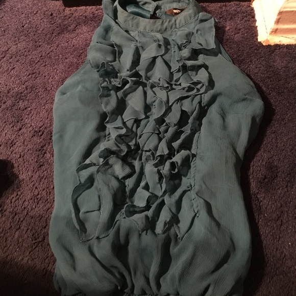 Blue ruffle blouse for work or chill date