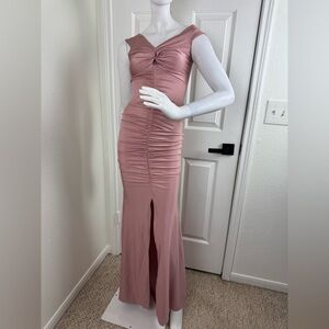 Blue. S Nude Pink Off Shoulder Ruched Jersey Slit Mermaid Dress Size M #137