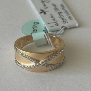 Blue Sage CZ Crossover Ring 14K Gold Plated Sterling Silver Sz.7
