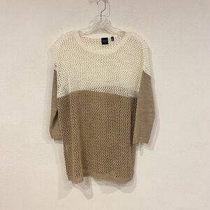 Blue Saks Fifth Avenue Sweater Women's Size Small Colorblock Linen Open Knit