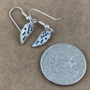Blue Sapphire 925 Solid Sterling Silver Wing Earrings 1.5 inch Drop with 925 Silver Beaded French Ear Wires