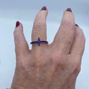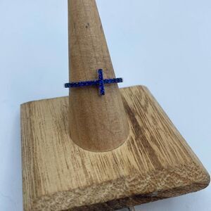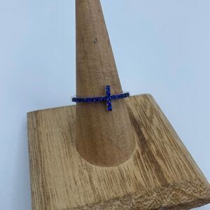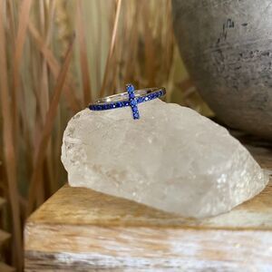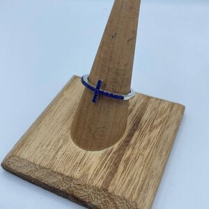 Blue Sapphire Cz Sterling Silver Sideways Cross Ring Size 7