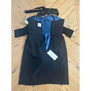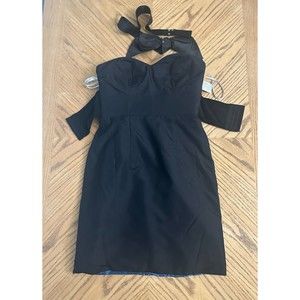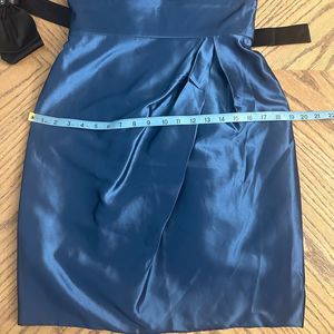 Blue Satin Cocktail Dress Bow Belt Gathered Bustier Strapless Bra Insert Size 8