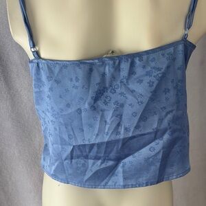 Blue Satin Floral Crop Top with Tie Front – Y2K Cottagecore Aesthetic