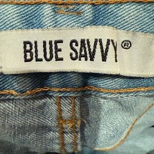 Blue Savvy Juniors Straight Leg Distressed Jeans 7 | Y2K 90s Festival Baggy Fit