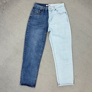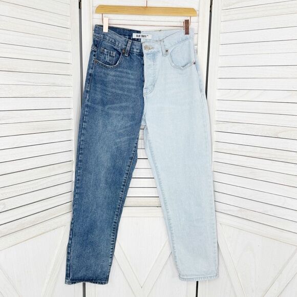 Blue Savvy Two Tone High Rise Mom Jeans Blue Juniors 5 27 Straight Leg Button