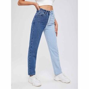 Blue Savvy Two Tone High Rise Mom Jeans Blue Juniors 5 27 Straight Leg Button