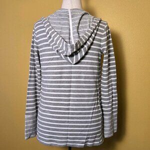 Blue Sax Fifth Avenue Cardingan Hoodie Sweatshirt Gray White Striped Small EUC