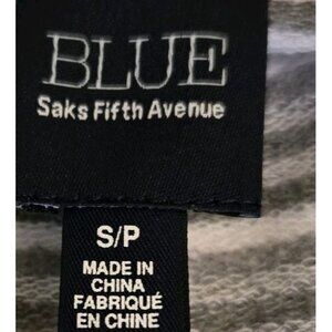 This Blue Sax Fifth Avenue Cardigan Hoodie Sweatshirt is a stylish and comfortable sweater with a striped pattern, and long sleeves. Made from a blend of spandex, viscose, and cotton, it features a tight-knit design and comes in a size small. The gray and white stripes add a classic touch, making it versatile for various outfits. With its hooded design and pockets, this top from Saks Fifth Avenue is perfect for both casual and semi-formal occasions, offering a fashionable and practical choice for women's clothing. Please see photos for details. Fast shipping and smoke-free home.