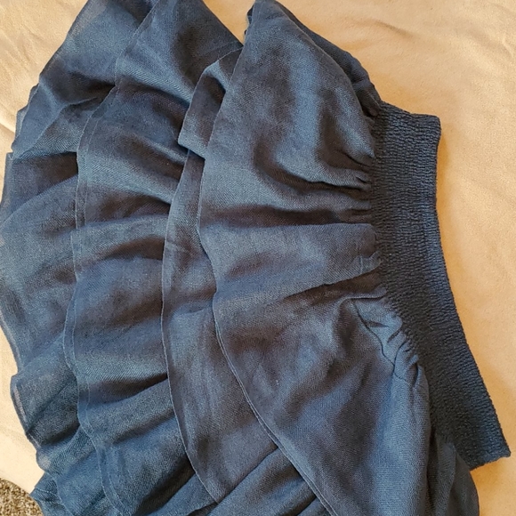 This is a beautiful slate blue Scarf. The centered is scrunched with a loose flowing edge! Perfect for sprucing up any outfit.