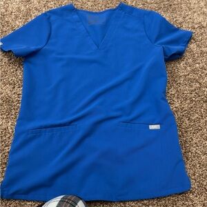 Comfortable figs royal blue scrub set. Includes top and pants. Ideal for medical professionals.