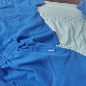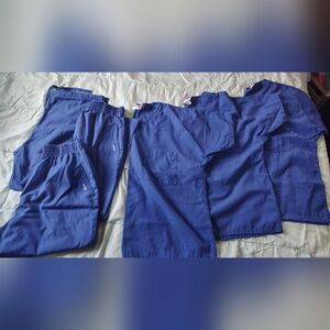 Comfortable blue scrub set with top and pants. Ideal for medical professionals. there are 3 sets. $15 each or all 3 for 30. size L