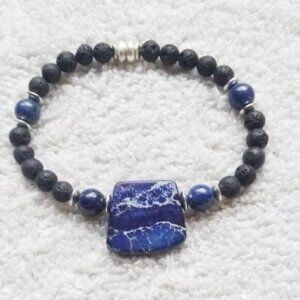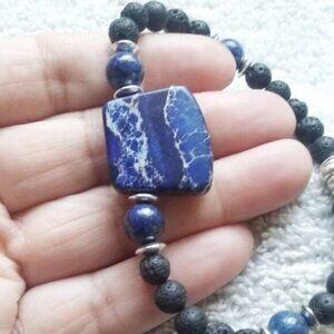 Blue Sea Sediment Jasper aka Imperial Jasper + Lapis + Lava Rock Bracelet 7.5"