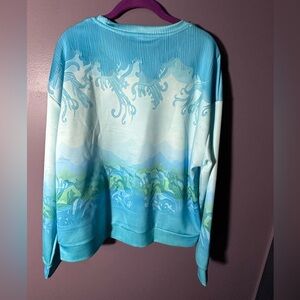Vibrant blue sweatshirt featuring a sea turtle graphic. Perfect for ocean lovers. I don’t think this has ever been worn but there are no tags.