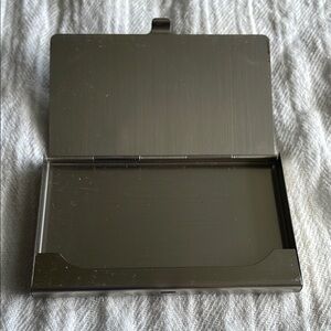 Stylish metal card holder featuring a seahorse design. Blue background with star accents. 2.25” x 3.75”