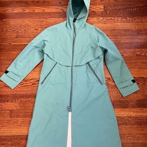 Classic blue rain coat — its lightweight, but very durable, and perfect for staying dry in style. Its longer so it can keep your legs dry as well. Basically brand new- in great condition!!
