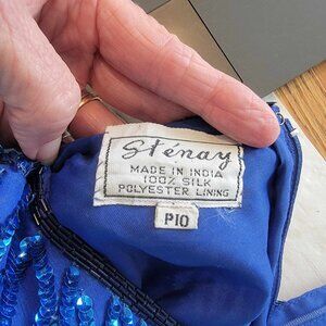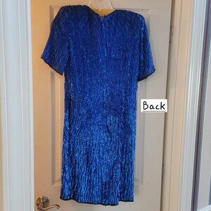 Size 10 (Says Petite, but it's not.) In excellent condition. Only worn once. Lining is silk. Short sleeve, knee length.