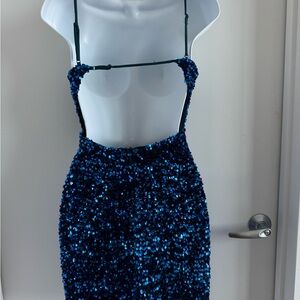 Shine at any event with this stunning blue sequin dress. Perfect for parties and special occasions.