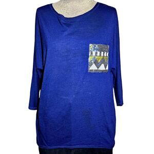 Blue Sequin Pocket Lightweight Sweater Size Small