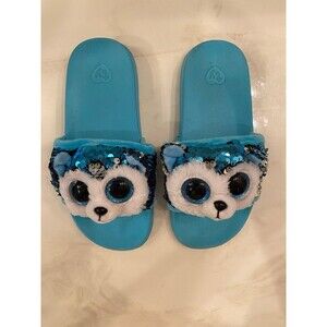Blue Sequin Slush the dog from Beanie Baby’s Boo's Collection Pool Slides Shoe Size1-3 Sparkly Colorful Fun!!