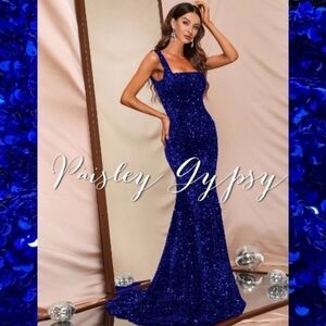 GLAMOROUS BLACK TIE TRENDY FORMAL ON TREND EVENING GOWN TRENDING ELEGANT STUNNING PEACOCK ROYAL BLUE DANCE EVENT PARTY WEDDING GALA DATE ROMANTIC SEXY TRUMPET MERMAID FIT AND FLARE