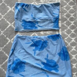 Flower patterned, mesh/sheer on the bottom half of the top