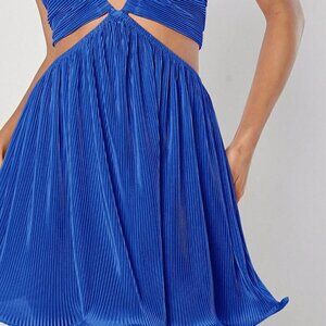 Blue Sexy Women's Plisse Cut Out Tie Backless Dress