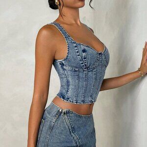 Blue Sexy Women's Sleeveless Denim Casual Top With Backless Design