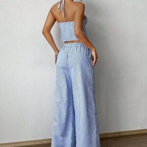 Blue Sexy Women's Striped Tank Top & Elastic Pants Two-Piece Set