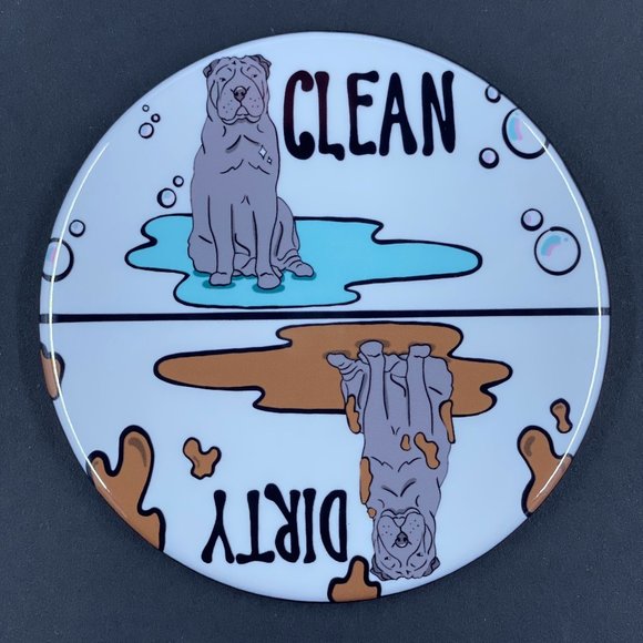 This handmade magnet features 2 hand illustrated dogs. Flip the magnet to display a clean or dirty dog! Perfect for keeping track of dishes in the dishwasher. Makes a wonderful gift or unique touch of decor for your dishwasher! Magnet measures 3.5".
