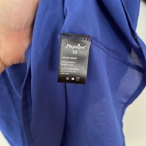 Papaya Blue Sheer top, decorative buttons on back size M