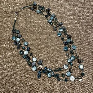 Blue Shell Bead Necklace. Three Strands. Knotted. Lobster Claw Clasp. 22” + 2” Extender.